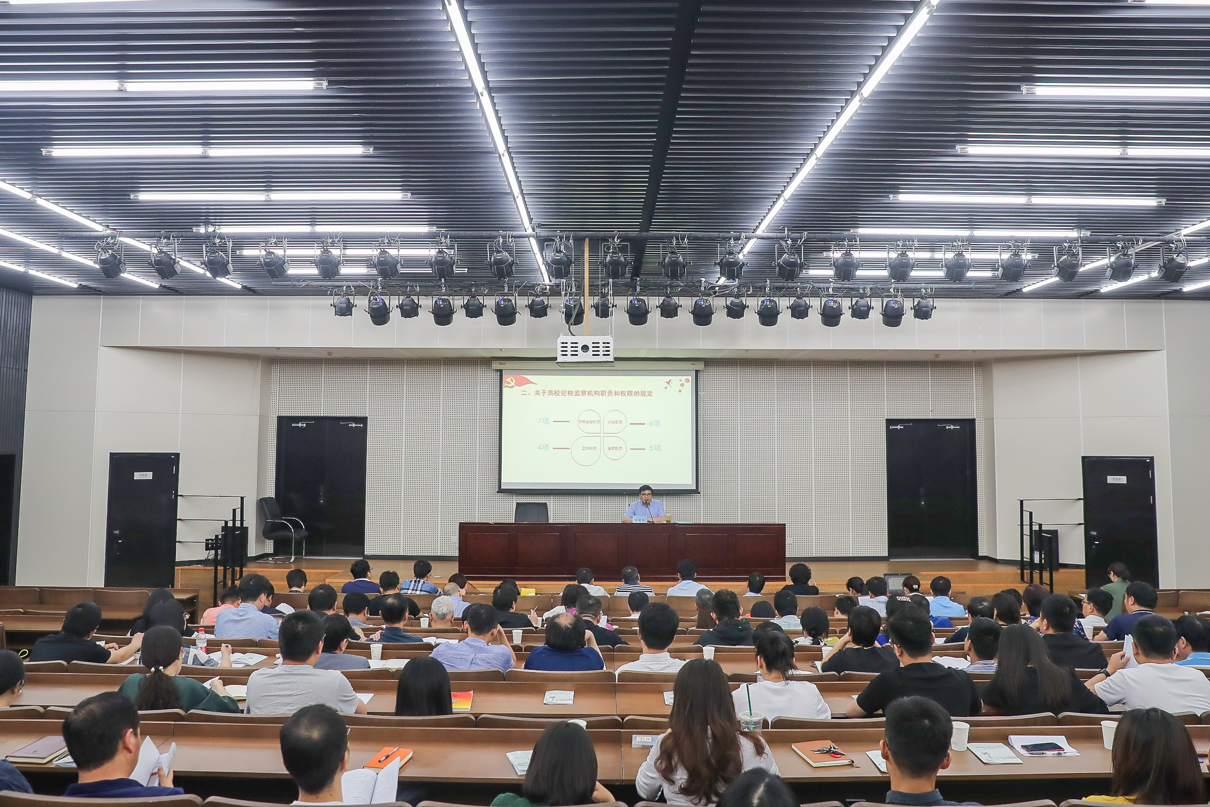 方培新在培训会上结合我省推进高校纪检监察体制改革的形势背景,着重阐述了改革的领导体制、机构调整、职责权限、制度机制等主要内容,并就如何以改革为契机,扎实推进学院全面从严治党、党风廉政建设和反腐败工作迈上新台阶作了全面辅导。他提出,一要以政治建设为统领,在践行“两个维护”上聚力用劲,守牢政治纪律、护牢政治生态;二要以“清廉浙音”建设为抓手,在传扬清朗向上能量上聚力用劲,纯正党风政风、师德师风;三要以“两个责任”为牵引,在管党治党压力传导上聚力用劲,进一步增强管党治党的主动性、权力监督的针对性、接受监督的自觉性。