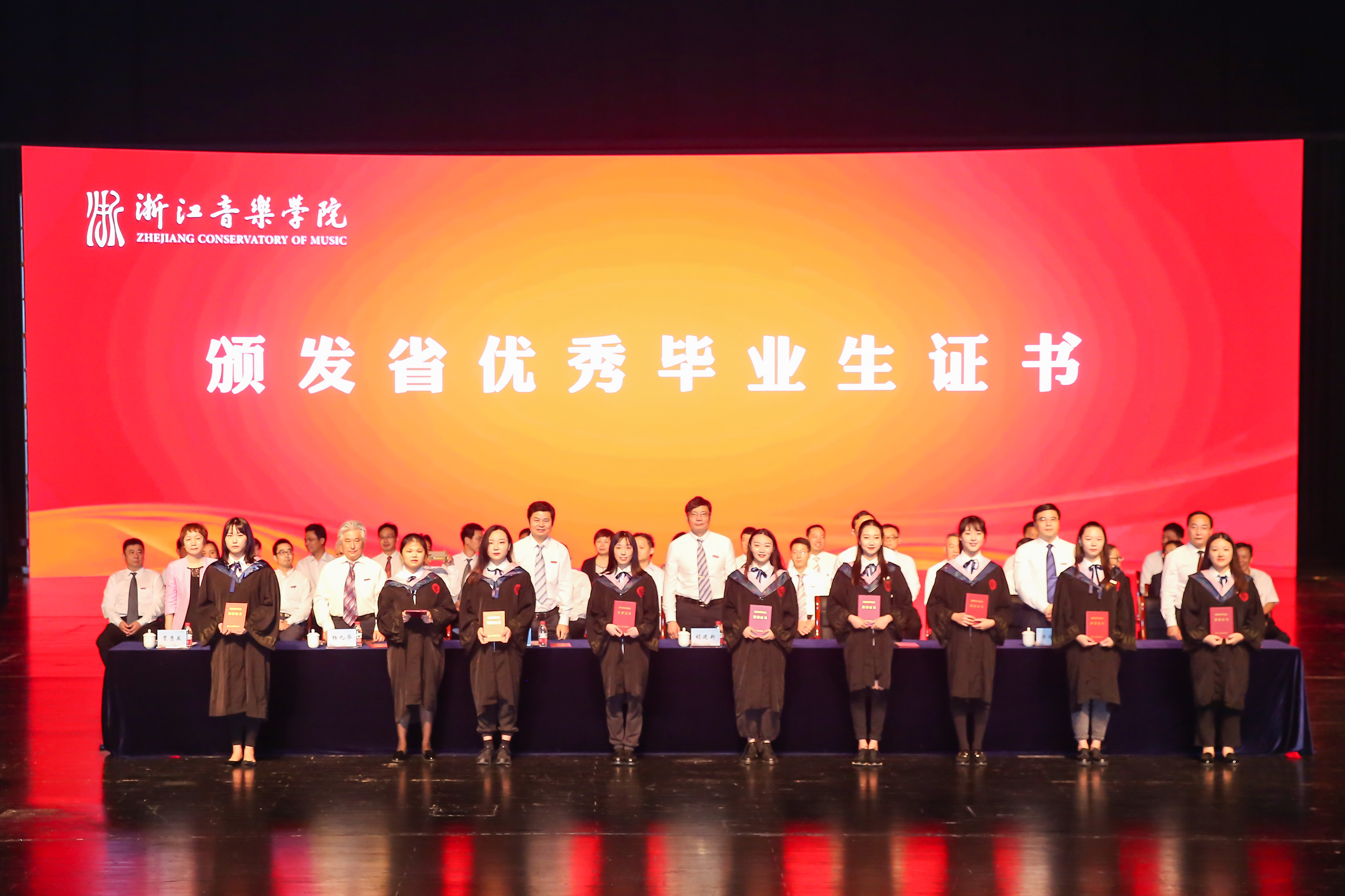 典礼上,表彰了2020届浙江省优秀毕业生和校级优秀毕业生,学院领导为省优秀毕业生代表颁发荣誉证书,并为毕业生代表颁发毕业证书。声乐歌剧系青年教师郑培钦教授代表全体教师发言,为毕业生送上教师的殷殷嘱托和由衷祝愿。作曲与指挥系研究生何中润、舞蹈系本科生张望洋同学分别代表研究生和本科生毕业生发言,为母校送上祝福。