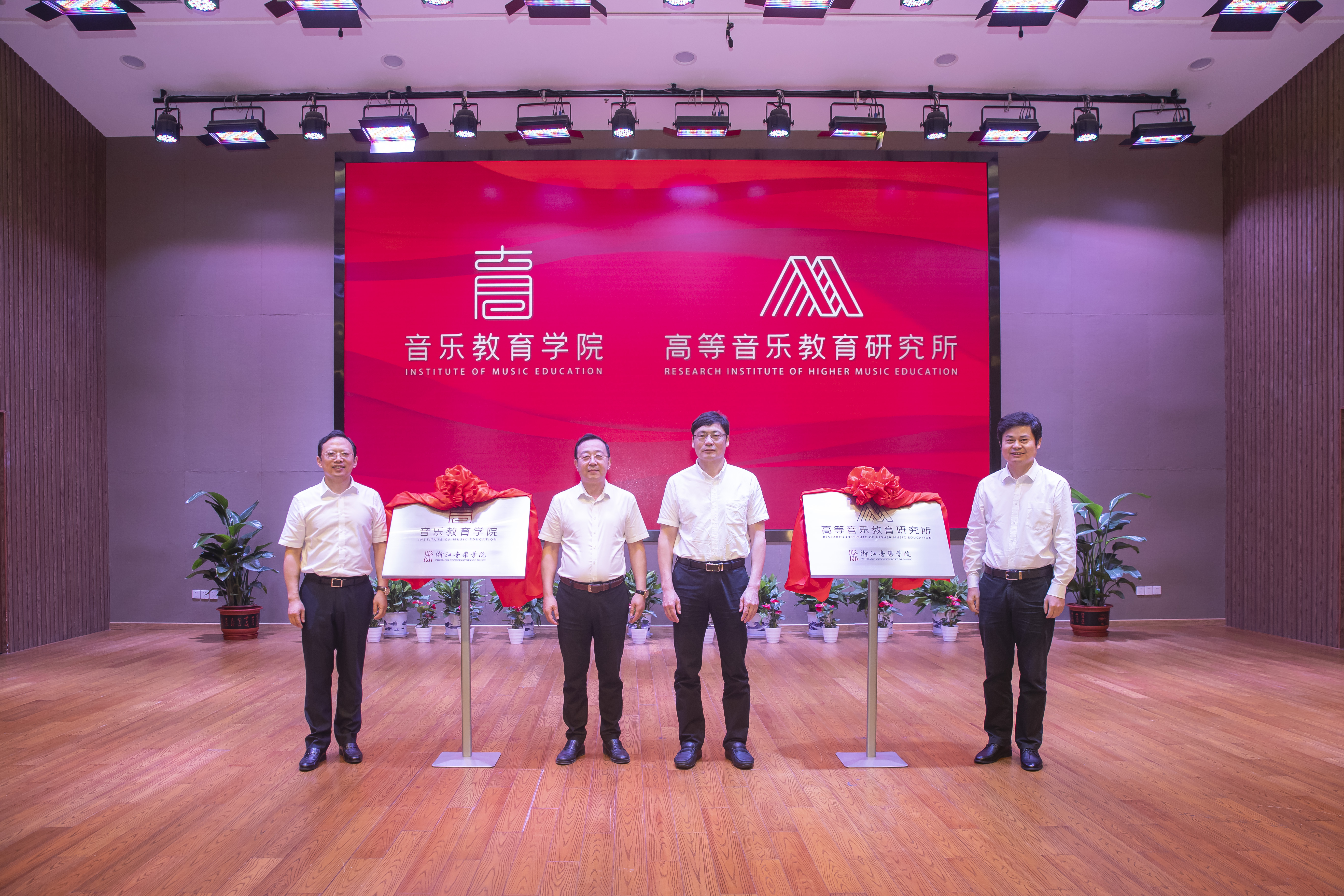 仪式上,省文化和旅游厅党组成员、副厅长刁玉泉,校党委书记胡建新,校长王瑞,校党委副书记、副校长张建国共同为音乐教育学院、高等音乐教育研究所揭牌。