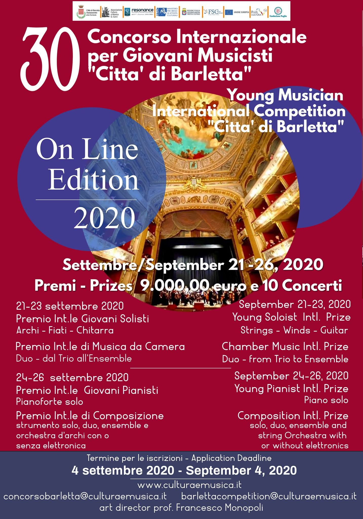 据悉,巴列塔(Barletta) 国际青年音乐家大赛以发掘具有天赋的青年音乐家们为初衷,启发其艺术及音乐灵感,助推国际间的文化交流,推广各国本土的历史人文及风土人情。本次比赛分为器乐、钢琴及作曲三大类,其中,器乐类设立了“管乐”“弦乐”“室内乐”“重奏”等组别,共有来自世界多个国家的320名选手参赛。大赛为各组别最高分者以及10个特殊奖项设立了9000欧奖金,并举办了多场线上音乐会,展现获奖选手的风采。