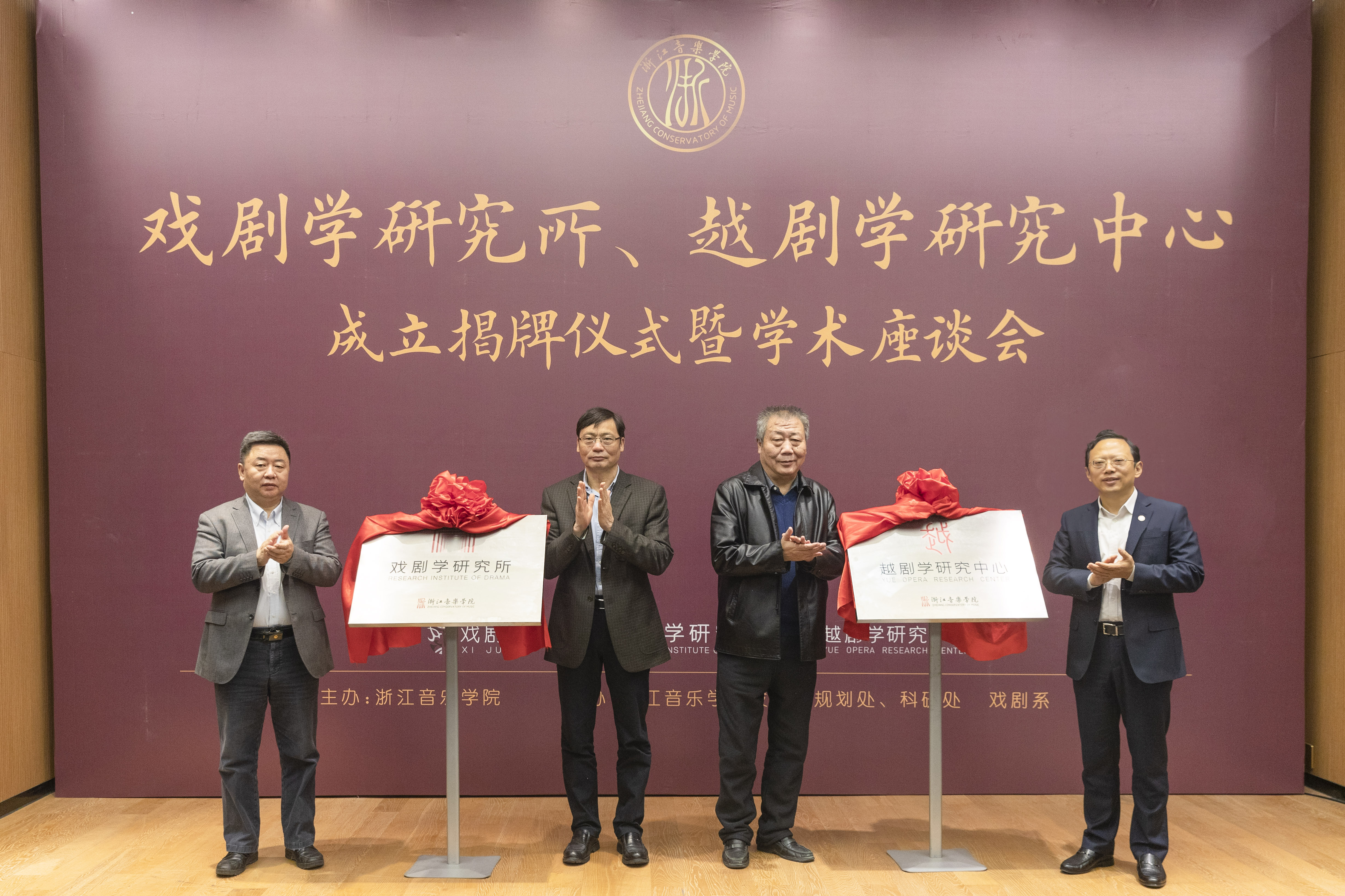 仪式上,胡建新与刘祯为戏剧学研究所揭牌,王瑞与黄先钢为越剧学研究中心揭牌。