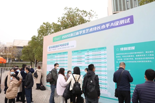 12月5日至6日,2020年浙江省学生艺术特长水平A级测试(音乐、舞蹈类)在学院举行。来自全省各地4000余名考生(音乐类考生3086人,舞蹈类考生960人)顺利完成了音乐基础知识测试(理论)和主副项测试。