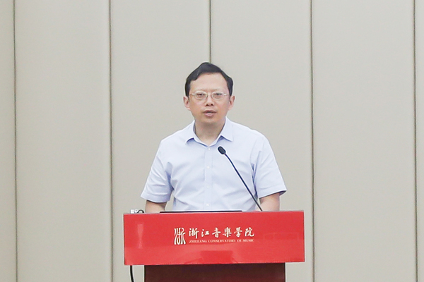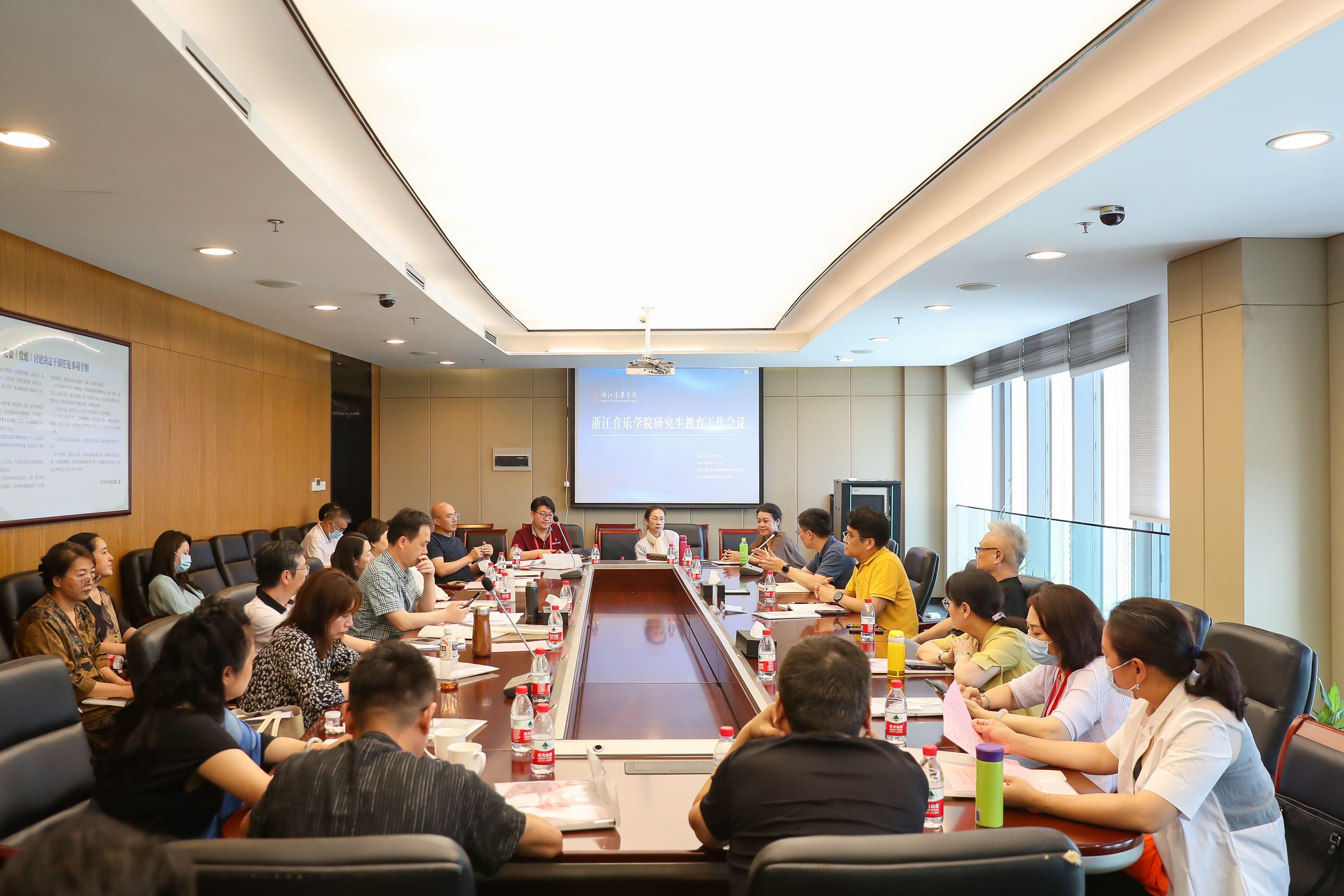 党委书记胡建新在会上指出,研究生教育在培养创新人才、提高创新能力、服务经济社会发展、推进国家治理体系和治理能力现代化方面具有重要作用。学院要深入贯彻落实习近平总书记对研究生教育的重要指示和全国研究生教育会议精神,全面贯彻党的教育方针,落实立德树人根本任务,以提升研究生教育质量为核心,深化改革创新,推动学院研究生教育高质量发展。他强调,要充分认识提升研究生教育质量对推进“高水平一流”音乐学院建设的重要作用。高质量的研究生教育是浙江高教强省、人才强省的重要目标任务,是支撑学院高起点谋划、高标准建设、高水平发展的重要条件,学院上下要将提高研究生培养质量作为服务高质量推进共同富裕示范区建设的重要抓手。要充分认识构建高水平的研究生教育管理体系是学院内涵发展的重要内容。研究生培养体系涉及学科体系、教学体系、课程体系、教材体系、管理体系等方方面面,需要我们进一步夯实基础、凝练特色,构建符合国家要求、具有浙音特色的研究生教育教学体系。要充分认识提高导师指导能力是完成立德树人根本任务的重要保证。在推动研究生教育内涵发展过程中,导师队伍建设至关重要,要切实把育人成效作为考核管理的关键指标,进一步强化指导教师教书育人主体责任,引导教师树立“师生荣辱与共”理念。