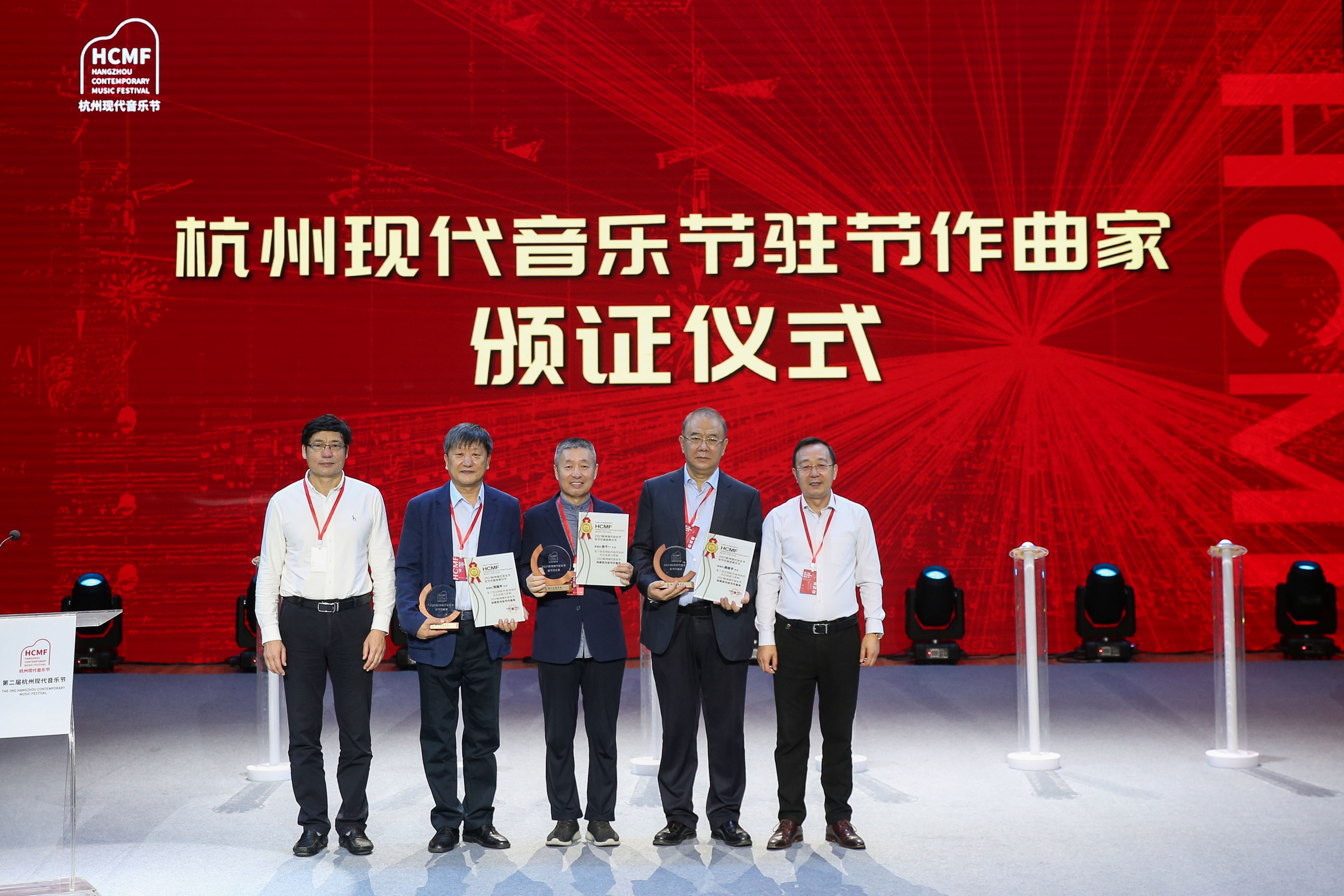 开幕式上,学院党委书记胡建新与刁玉泉为驻节作曲家张千一、唐建平、贾国平颁发驻节艺术家证书。