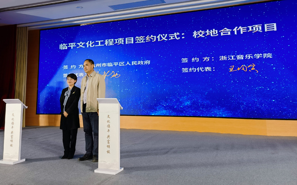 仪式上,王均寅分别与施华淼为“浙江大运河文艺创研中心”揭牌,与临平区副区长王艳勤签订校地战略合作框架协议。与会领导、嘉宾及长三角高校代表共同启动“校地共建大运河文艺发展联盟”。“浙江大运河文艺创研中心”和“校地共建大运河文艺发展联盟”的成立,将进一步推动双方围绕大运河文化传承保护,开展大运河文艺精品的创作和推广,挖掘大运河历史、讲好大运河故事、传播大运河声音,打造大运河音乐文化新名片。
