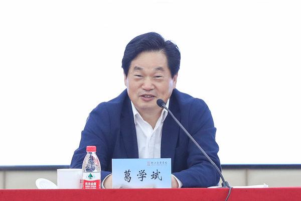 会上,葛学斌充分肯定了学院成立以来秉承“事必尽善”校训精神,发挥长三角区域一体化和江南传统音乐文化优势所取得的跨越式发展。他指出,音乐是文艺事业的重要组成部分,文艺事业是党和人民的重要工作,必须在大局下思考、在大局下行动,把握好工作的方位定位,因势而谋、应势而动、顺势而为,回答好“如何从习近平总书记关于文艺工作的系列重要论述中汲取智慧力量,推动浙江文艺创作实现突破性跃升”的重要命题。他指出,习近平总书记关于文艺工作的重要论述视野宏阔、判断科学、学理深厚、内涵丰富,我们要深刻学习领会其中的丰富内涵和真理奥义。努力将重要论述和指示批示贯穿于文艺创作、艺术教育及人才培养的全过程各方面,特别是要把握时代主题、弘扬时代精神,坚守人民立场、书写人民史诗,坚持守正创新、增强原创能力,讲好中国故事、展现中国形象,坚持弘扬正道、追求德艺双馨,坚持扎根中国大地、培育时代新人。要持续地学、深入地悟,带着理解学、带着感情学,在具体实践中结合好、运用好、落实好。面对文艺事业发展面临的新形势新挑战,我们要进一步提高政治站位、加强组织引导、完善工作机制、找准方法路径,努力提升浙江文艺创作的质量和水平。要在方式方法上求突破,科学设定目标体系、统筹抓好选题规划、强化全流程工作保障。要在体制机制上谋创新,形成管理者与创作者有效互动的交流机制,形成上下联动、多跨协同的工作机制,探索开放互动、内聚外联的合作机制。要在工作实践中开新局,创新文化精品力作创作生产的体制机制,在打造文化精品力作上不断取得新突破。围绕今年中心工作和主题主线,我们要主动作为、守正创新,继续加强文艺精品创作和人才培养力度,为文艺精品创作贡献浙音力量。他强调,教育是社会政治经济良性发展的坚实基础,高校是省域治理的重要领域,音乐艺术是实现社会善治的有效方式。浙音承载着培养人才、繁荣文艺、服务社会的重要职责,在文化浙江建设中有着不可或缺的位置。要努力在艺术教育和精品创作中做到正确选择、持续坚守、实现超越、铸就辉煌,唱响省域现代化发展交响曲中的浙音声部。最后,葛学斌勉励全体师生,文艺繁荣发展的机遇前所未有,文艺工作者施展才华的舞台天高地阔,学院要义不容辞地肩负起时代赋予的使命,回应人民寄予的期待,为打造新时代文化高地,铸就新时代文艺高峰,高质量发展建设共同富裕示范区作出新的更大贡献,以优异成绩迎接党的二十大胜利召开。