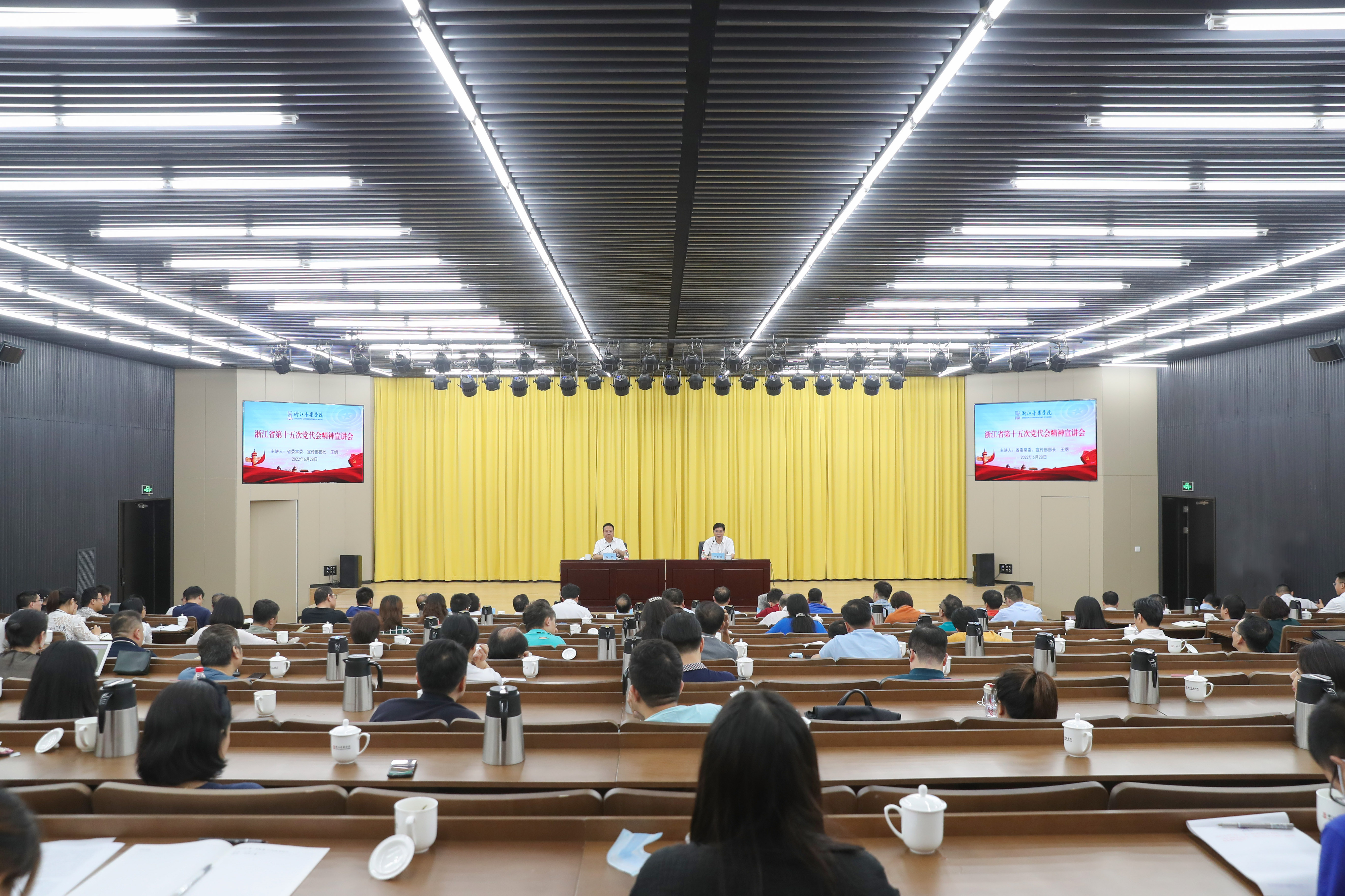 干武东在主持时表示,王纲部长的报告立意高远、主题鲜明,紧贴实际、精辟独到,既有丰富的理论内涵和前瞻的战略思考,又体现出深厚的为民情怀和务实的工作作风,对学院的发展具有很强的指导意义。他对进一步贯彻落实报告会精神提出三点意见:一要提高站位,迅速兴起学习宣传热潮。全校上下要充分认识学习好、宣传好、贯彻好省第十五次党代会精神的重要意义,把学习宣传贯彻党代会精神作为当前和今后一个时期的重大政治任务,通过多种形式,推动师生员工将党代会精神真正学深悟透、入心入脑。二要把握重点,深刻理解会议精神实质。要对照省第十五次党代会的深刻内涵,按照王部长提出的要求,围绕“两个先行”奋斗目标、“八个高地”具体目标和十个着力主要任务,深刻理解把握省委重大决策部署的精神实质,推动学院“十四五”规划和中心工作有力推进。三要注重实效,为文化强省负起浙音担当。要紧紧围绕立德树人和服务文化浙江建设双重使命,认真回答好王部长提出的四个问题,开展重大文艺精品和浙江新时代主题歌曲创作,主动做好高雅艺术普及和新时代美育工作,着力打造一批在共同富裕示范区和社会主义现代化先行省建设中具有“浙音”辨识度的突破性、标志性成果。