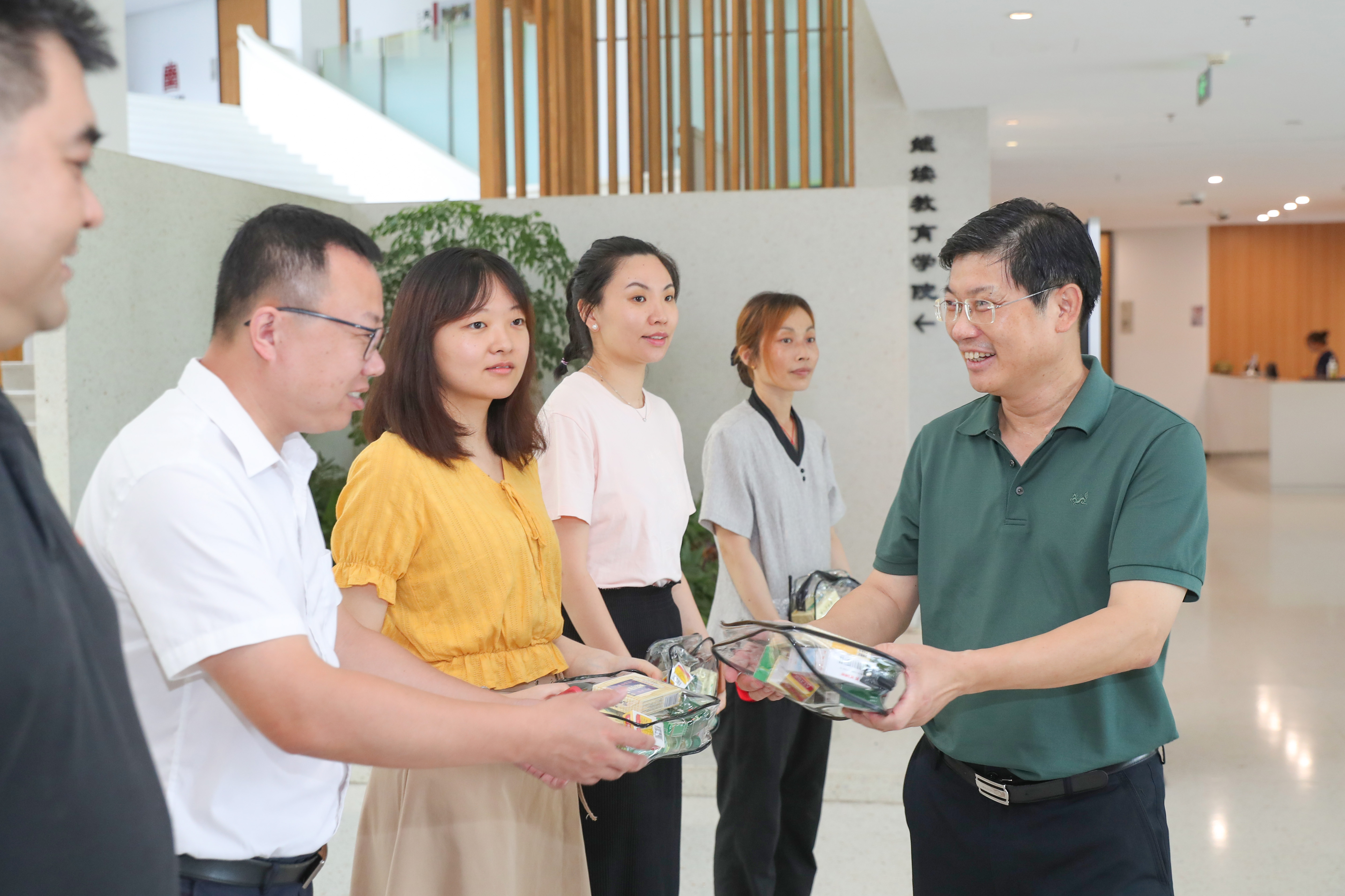 暑假期间,依旧有一批教职工坚守在教学科研与管理服务一线,为学院事业发展贡献自己的力量。7月20日上午,学院党委书记干武东,党委副书记王均寅、蔡亦军,副院长张伟波看望了高温下坚守一线的教职工,向他们致以诚挚的慰问,并送上防暑礼包,让留校教职工在炎炎夏日感受到一抹清凉。