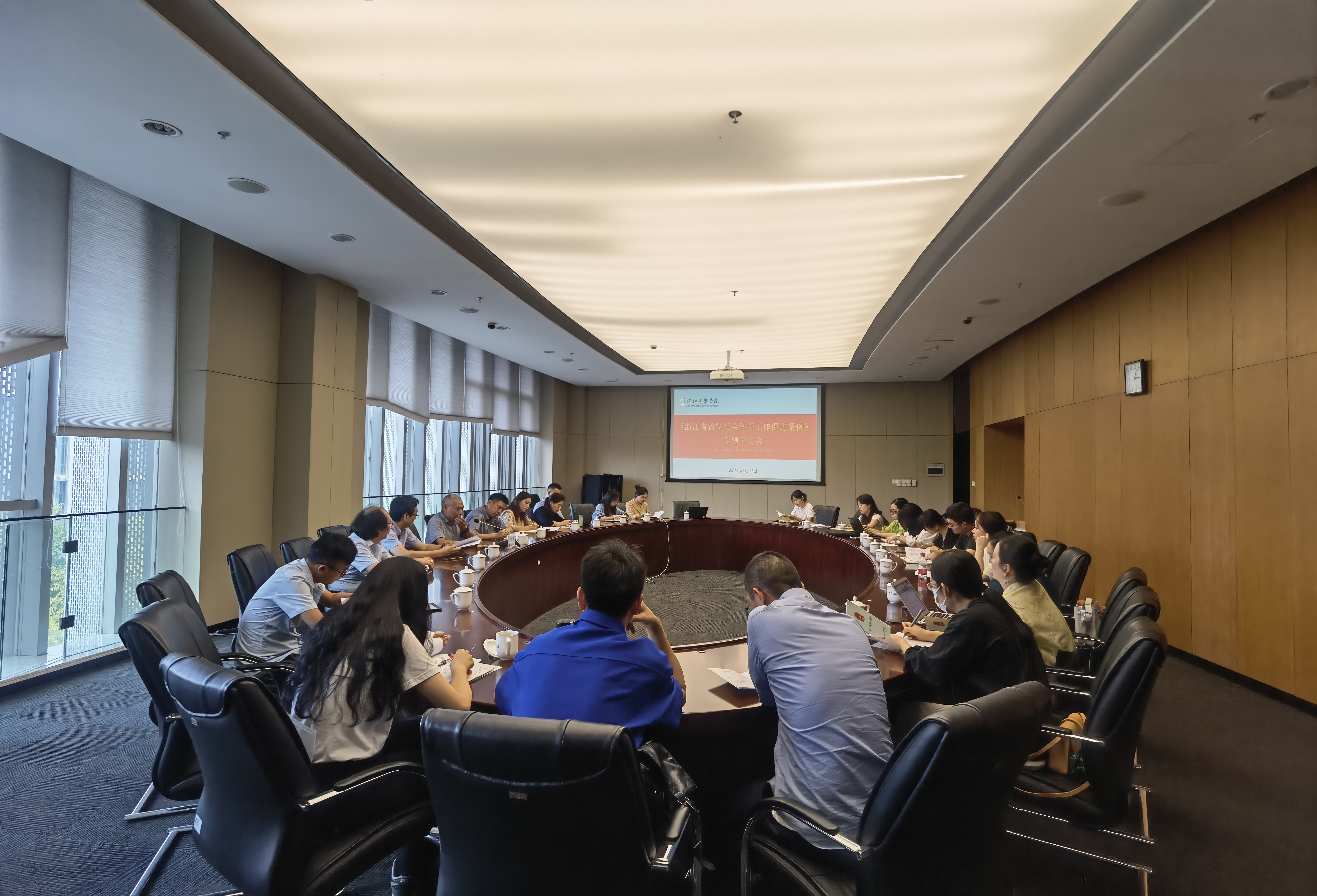 学院社科联理事会成员、相关职能部门负责人、各教学单位分管科研负责人及学科秘书、浙江省之江青年学者、承担浙江省社科联科研项目负责人、各研究平台科研助理参加专题学习会。