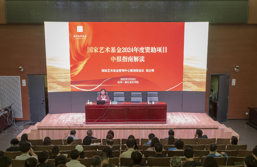 国家艺术基金管理中心主任王明亮、规划处处长刘立明,学院党委书记干武东、副院长董德君出席培训会,来自文化和旅游部南片区部分共建院校、浙江省有关艺术高校负责人和教师代表150余人参加了此次申报工作培训会。