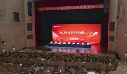 金秋送爽、丹桂飘香。新学期报到第一天,9月16日下午,学院2023 年秋季学期教职工大会在学院大剧院举行。学院党政领导班子全体成员,各单位、部门负责人及全体教职员工参加会议。