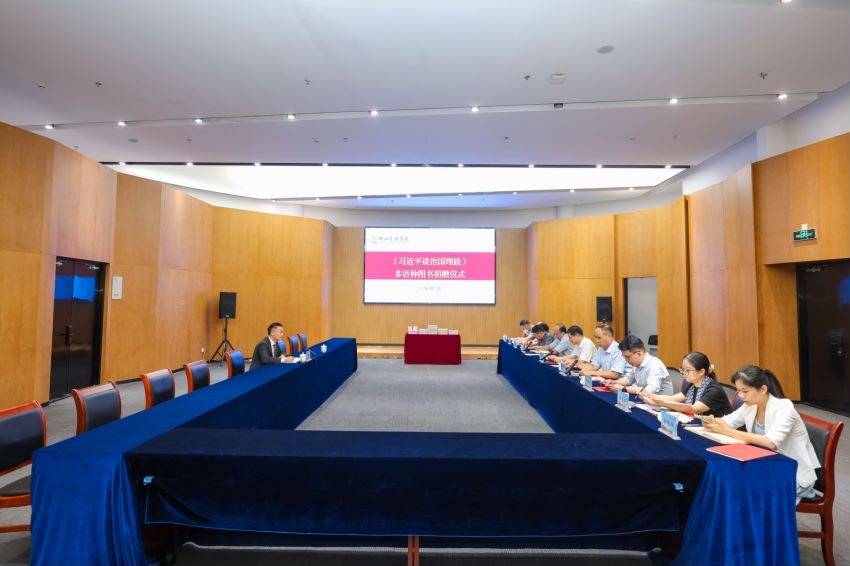 9月25日下午,《习近平谈治国理政》多语种图书捐赠仪式在行政楼103会议室举行。北京崇学文化发展有限公司向学院捐赠《习近平谈治国理政》英、俄、日、法、德、西、葡、阿等8个语种版本图书180册。党委书记干武东,北京崇学文化发展有限公司负责人余富文,党委副书记王均寅,党委委员、组织部(统战部)部长李俊等出席捐赠仪式。捐赠仪式由王均寅主持。