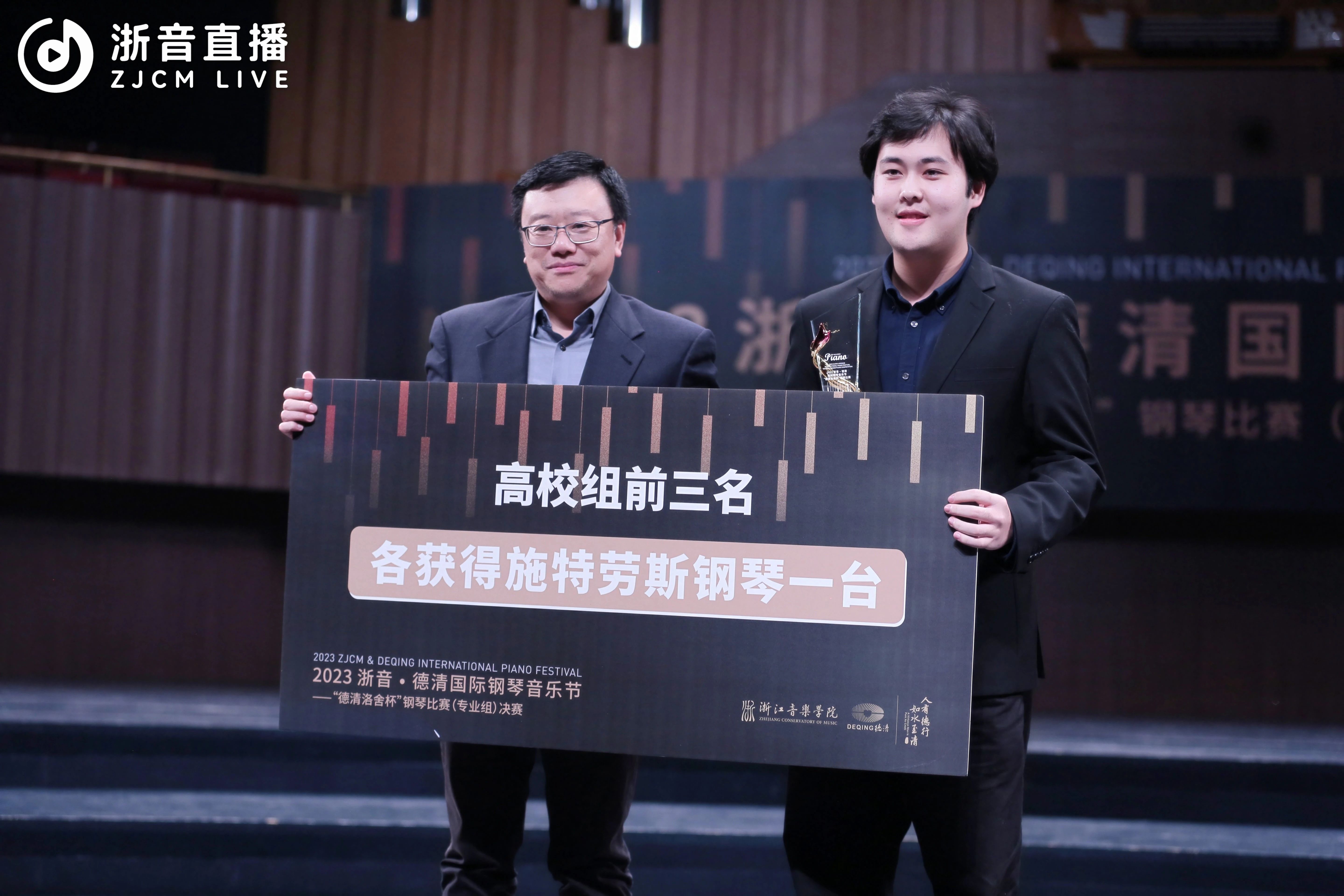 学院党委副书记王均寅,副院长董德君,德清县人民政府四级调研员姚明星,县委宣传部副部长、文明办主任陈磊,县文化和广电旅游体育局、融媒体中心、文化馆、洛舍镇及德清钢琴企业代表,钢琴比赛决赛评委,以及学院办公室、宣传部、社会合作中心、钢琴系、团委、乐典公司等部门负责人出席闭幕式。