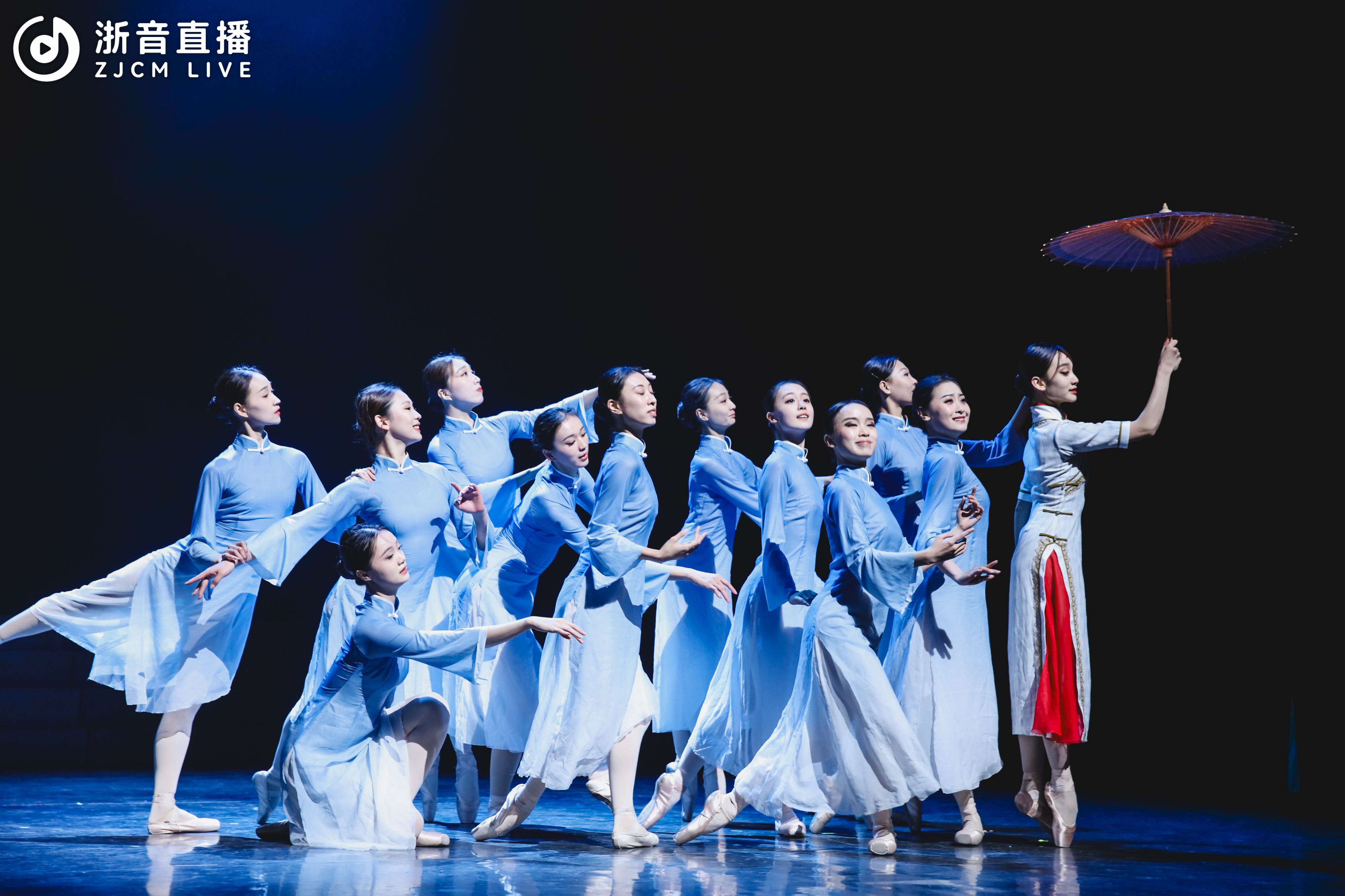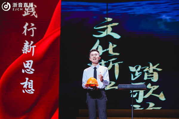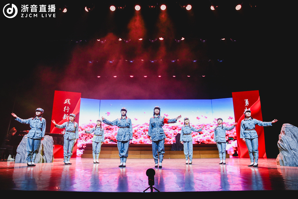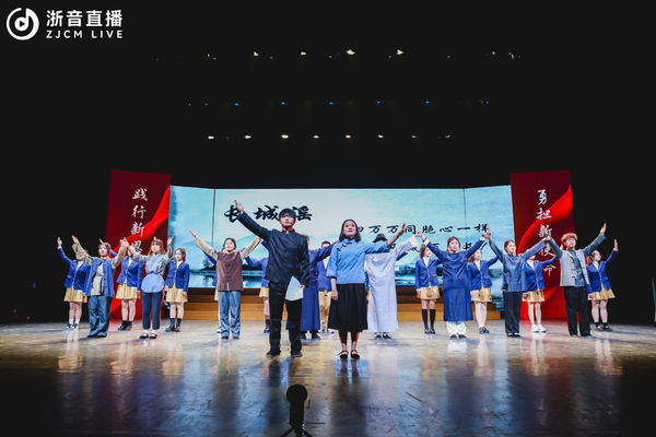 展演节目以习近平新时代中国特色社会主义思想为指导,聚焦主题教育实践,紧扣党的二十大精神主线,贯通习近平文化思想,分“党史留声、青春之歌、时代回响”三个篇章。序幕《第一交响序曲》由附中学子呈现,表达了革命年代中国共产党人在战火中的激情,讴歌了中华民族在漫漫岁月中不屈不挠的坚韧品格,呈现了学校构建大中小一体化思政课体系的生动局面;在“党史留声”篇章,思政课教师丁俊华现场讲述了“长征精神”,音教学子以艺术形式呈现了歌剧《长征》选段《三月桃花心中开》,颂扬了根据地群众对红军战士的深厚情谊,以及对革命事业的坚定信念和对美好生活的向往;国乐和戏剧学子精彩演绎的弦乐重奏《我的祖国》,烘托了在伟大抗美援朝战争中志愿军战士对祖国、对家乡的无限热爱之情和革命英雄主义气概,旋律一起,观众心中即刻涌动起浓烈的爱国主义情感;在原创音乐情景剧《万里长城万里长》中,音乐学系同学以《长城谣》词作者潘孑农和曲作者刘雪庵的创作历程为叙事主线,演绎了20世纪30年代的音乐家们以音乐传递力量、传承精神的故事;钢琴独奏《解放区的天》承续“万里长城万里长,长城外面是故乡。四万万同胞心一条,新的长城万里长”的叙事主线,表达了解放区人民憧憬美好生活的喜悦心情。在“青春之歌”篇章,流行学子歌曲联唱《海阔天空》《夜空中最亮的星》《最美的太阳》,表达了新时代青年践行“请党放心、强国有我”的铮铮誓言;歌曲《蝶&化蝶》由越剧和音乐剧相融合的全新表演方式,将梁祝故事娓娓道来,既有传统韵味,更有时代气息;思政课教师徐施易现场讲述了铸牢中华民族共同体意识的重要意义,舞蹈学子以群舞作品《春种》的形式,精准表达了播种、翻耕、插秧等劳动场景,呈现了在中国共产党的坚强领导下,全国各族人民像石榴籽一样紧紧抱在一起的民族情感。在“时代回响”篇章,国乐系研究生王刘呈现了2023年度浙江省高校思政微课大赛决赛中荣获特等奖作品《文化浙江踏歌行——三个物件里的音乐故事》,以见证学院发展过程中的三样实物为线索,讲述了浙音青年学子追逐梦想、传播文化、守正创新的故事,描绘了在“八八战略”引领下浙江文化艺术事业繁荣发展的壮丽图景;思政课教师王海涛现场讲述了党的一大召开前后,李达夫人王会悟参与党的一大的那段历史;舞蹈学院芭蕾原创剧目《南水谣》,从革命女性王会悟的视角出发,诠释伟大建党精神,群舞与独舞相结合,颂扬了江南水乡女子冒险投身革命的坚定意志;原创作品男女生对唱《在你血脉里》生动呈现了中华历史厚重的文脉,旋律中流淌着文化情怀,深刻阐释了在习近平文化思想引领下文化事业取得的历史性成就、发生的历史性变革;音教学子的混声合唱《同爱同在》,带领现场观众重回杭州亚运会赛场,“同呼吸同感受同梦想,同爱同在同分享”的歌声久久回荡,再次展示了人类命运共同体理念的真理伟力。