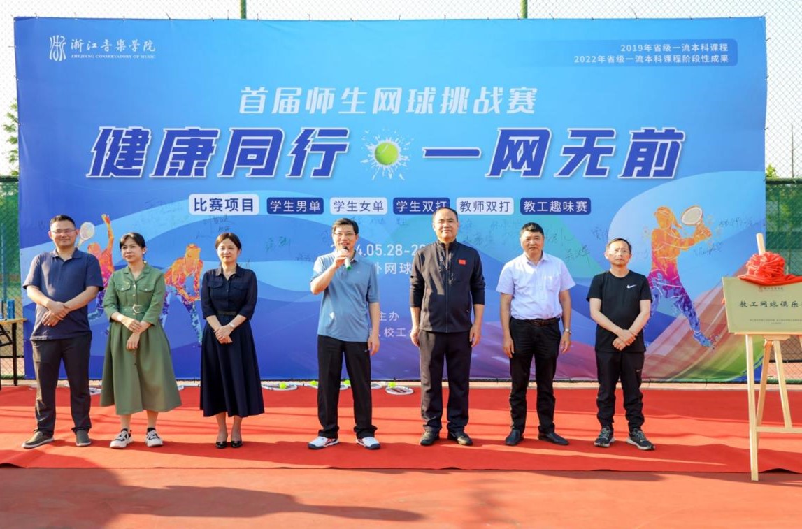 干武东宣布首届比赛开幕,王均寅致开幕词,蔡亦军为教工网球俱乐部和学生网球俱乐部揭牌。管弦系学生唐文杰和亚美尼亚籍国际生唐菲分别代表运动员和裁判员宣誓。