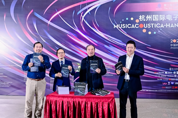 现场还举行了杭州国际电子音乐作曲比赛获奖作品数字专辑出版签约及启动仪式。院长王瑞、音乐节艺术总监张小夫、人民音乐出版社音像中心主任黄志鹏、库客音乐总经理余赫共同开启这一重要时刻。