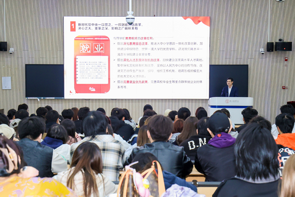 课上,干武东深刻阐述了党的二十届三中全会及全会通过的《中共中央关于进一步全面深化改革、推进中国式现代化的决定》的深远意义,指出全会是在以中国式现代化全面推进强国建设、民族复兴伟业的关键时期召开的重要会议,是新时代新征程上推动全面深化改革向广度和深度进军的总动员、总部署,充分释放了改革不停顿、开放不止步的强烈信号。随后,他以鲜活的事例、详实的数据、生动的语言,引领师生从“把握历史主动,深入了解新时代全面深化改革的重大成就”“瞄定关键领域,深刻理解全面深化改革的重要性和总目标”“遵循改革规律,深切把握持续推动全面深化改革的重大原则”“发扬‘事必尽善’,奋力践行高水平文化强省建设的使命担当”四个维度,深刻理解深化改革对社会主义现代化建设及浙音实现跨越式发展的关键作用和重要意义,引导大家进一步学习领会党的二十届三中全会精神,并将学习成效转化为成长动力。