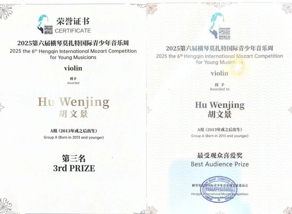 莫扎特国际青少年音乐周是一项国际性、综合性、专业性的青少年音乐活动,不仅关注青少年音乐家高超的演奏技巧,更注重他们对古典音乐风格的理解与诠释。作为中国目前唯一同时荣获世界国际音乐比赛联盟(WFIMC)与阿林克·阿格里奇基金会(AAF)国际钢琴赛事联盟双成员身份的国际青少年音乐盛事,莫扎特国际青少年音乐周自2015年创办以来,其以高度的专业性和广泛的影响力,为全球古典音乐爱好者提供了对话交流、文化碰撞与融合的舞台。本次比赛吸引了来自全球23个国家及地区的数百名选手参与。在A组竞争中,汇聚了众多来自世界顶尖音乐院校的青少年演奏家。经过多轮激烈角逐,胡文景凭借出色的表现最终脱颖而出。