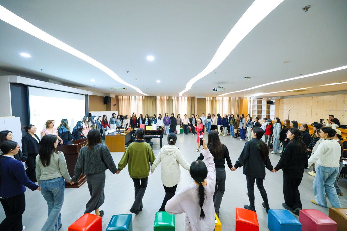 在Gabriella Báródi与Andrea Fehér两位教授联袂呈现的匈牙利音乐教育工作坊中,柯达伊教学法中的柯尔文手势成为贯通东西方音乐语汇的桥梁。她们以匈牙利民谣为内容,通过具象化的手势引导,将抽象音高化为可触的旋律线条,引导学生们在拍手、吟唱与多声部协作中,体味着匈牙利民歌的质朴与深情。“这一场跨文化的音乐对话,不仅是技艺的传授,更是一次心灵的共鸣,让人仿佛置身于多瑙河畔,听见了匈牙利民族血脉中永不褪色的歌谣。”参与大师班的学生表示。