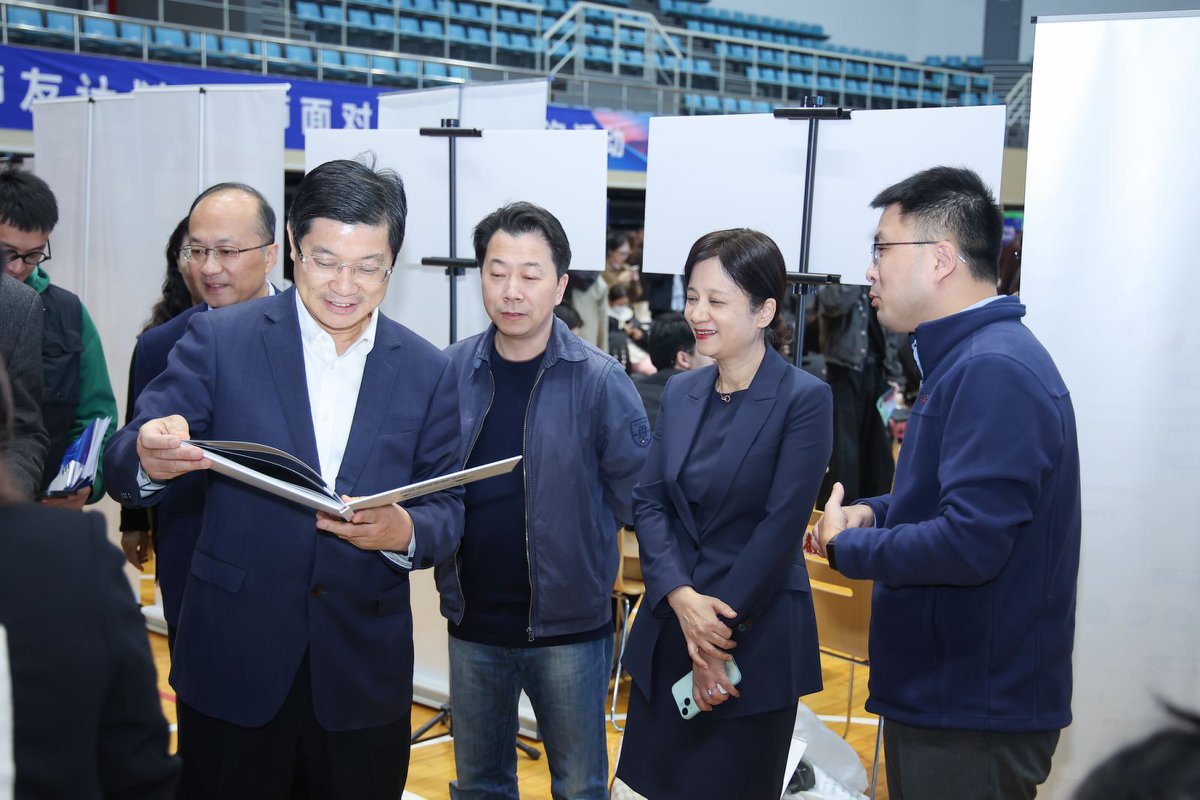 党政班子成员干武东、王均寅、蔡亦军、奚丽萍、董德君、李俊到现场与用人单位交流,详细了解招聘需求和学生应聘情况。