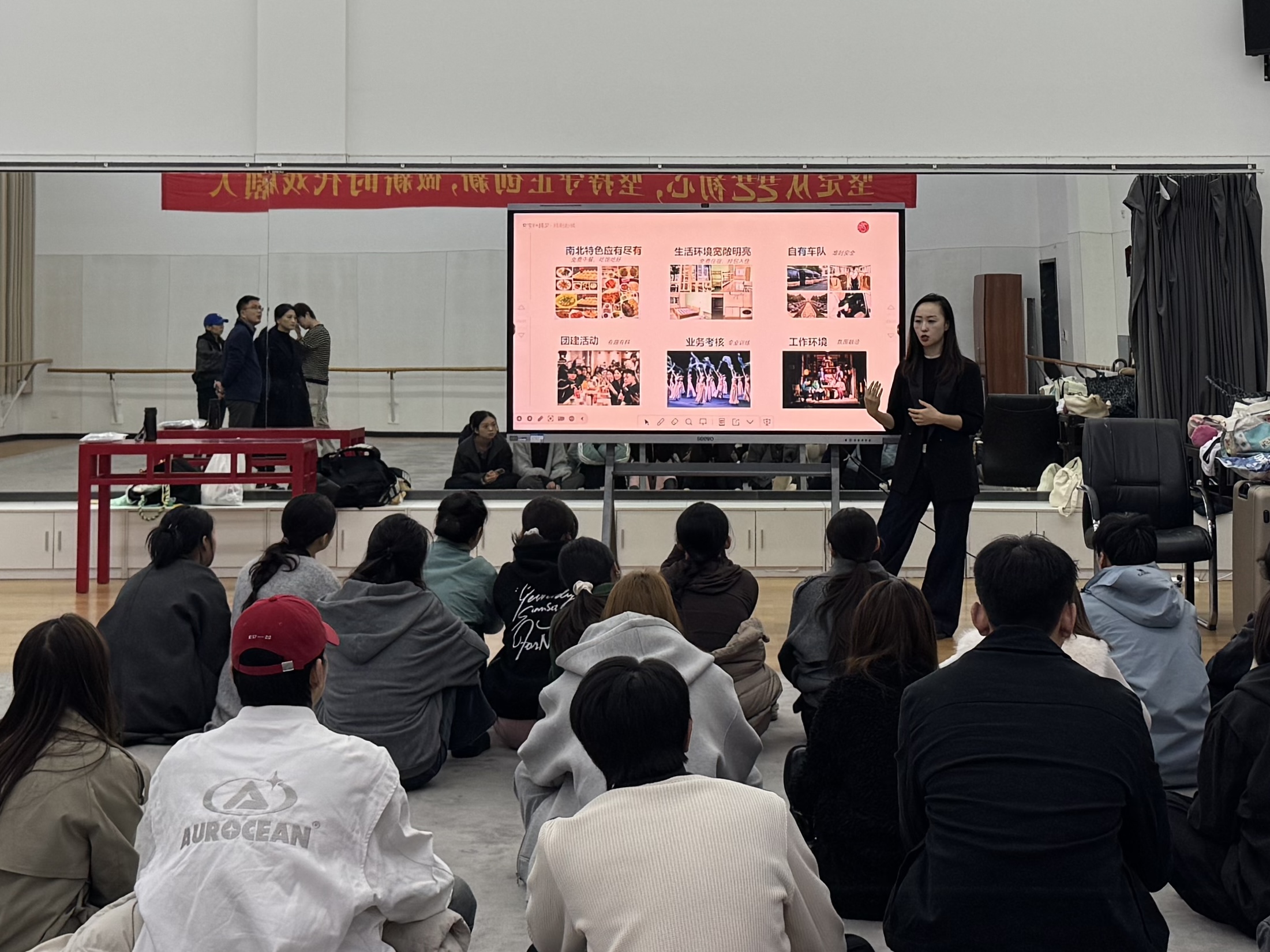 招聘会前,音乐教育学院、舞蹈学院、戏剧系也积极主动与教育单位、文旅单位和专业院团对接,邀请相关单位来校开展专题宣讲会,让毕业生可以与用人单位有面对面深入接触交流的机会,帮助学生们在就业选择中更加理性。